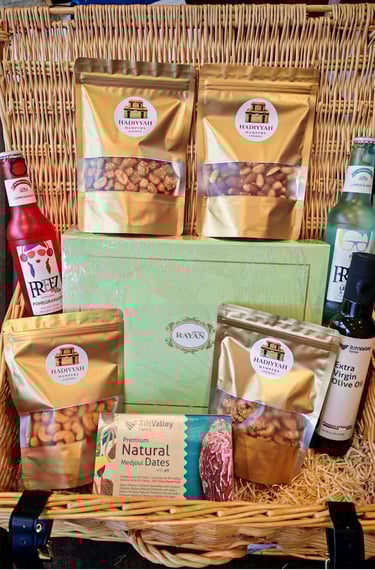 At Hadiyyah Hampers London, gifting is elevated to an art form- a timeless expression of grace and generosity passed through generations. Each hamper is meticulously curated with exceptional quality and exquisite taste, honouring tradition while celebrating life's most treasured moments with cherished people.